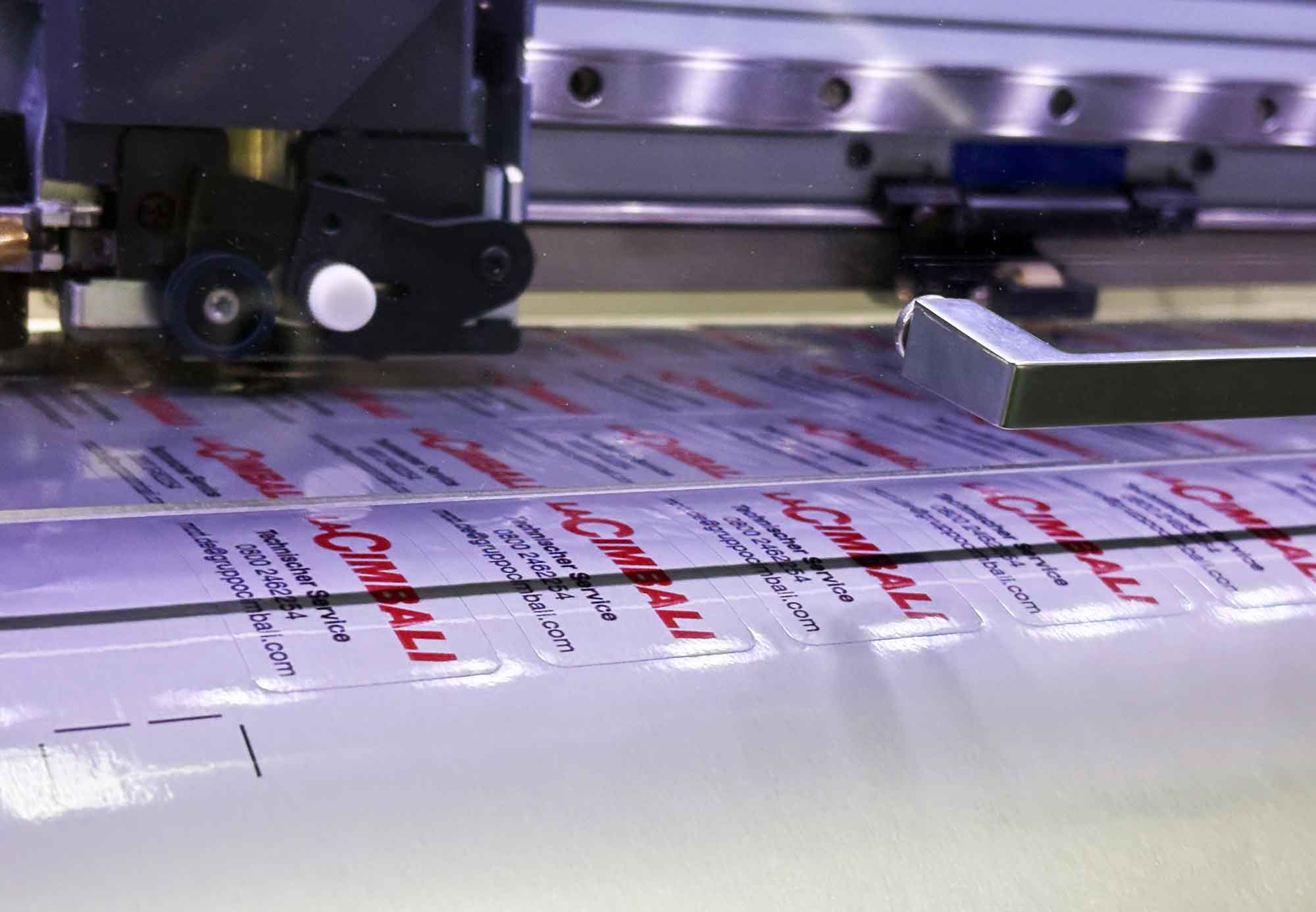 - Das PDF wird an den Plotter oder die Fräse übergeben, der die Aufkleber entlang der Cutcontour ausschneidet.