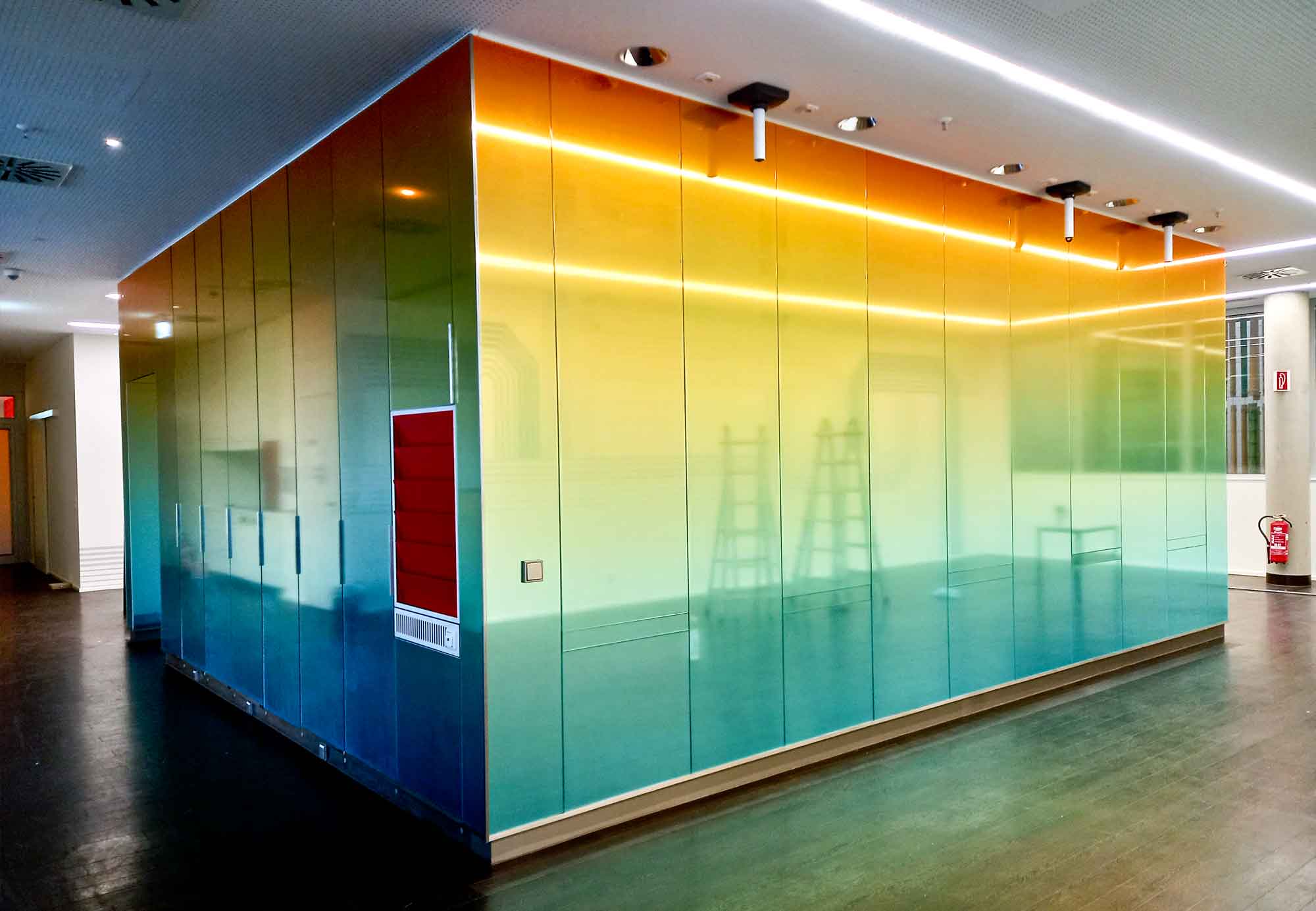Wandgestaltung von Spiegelflächen mit Farbverlauf für Bürogestaltung in Oberursel