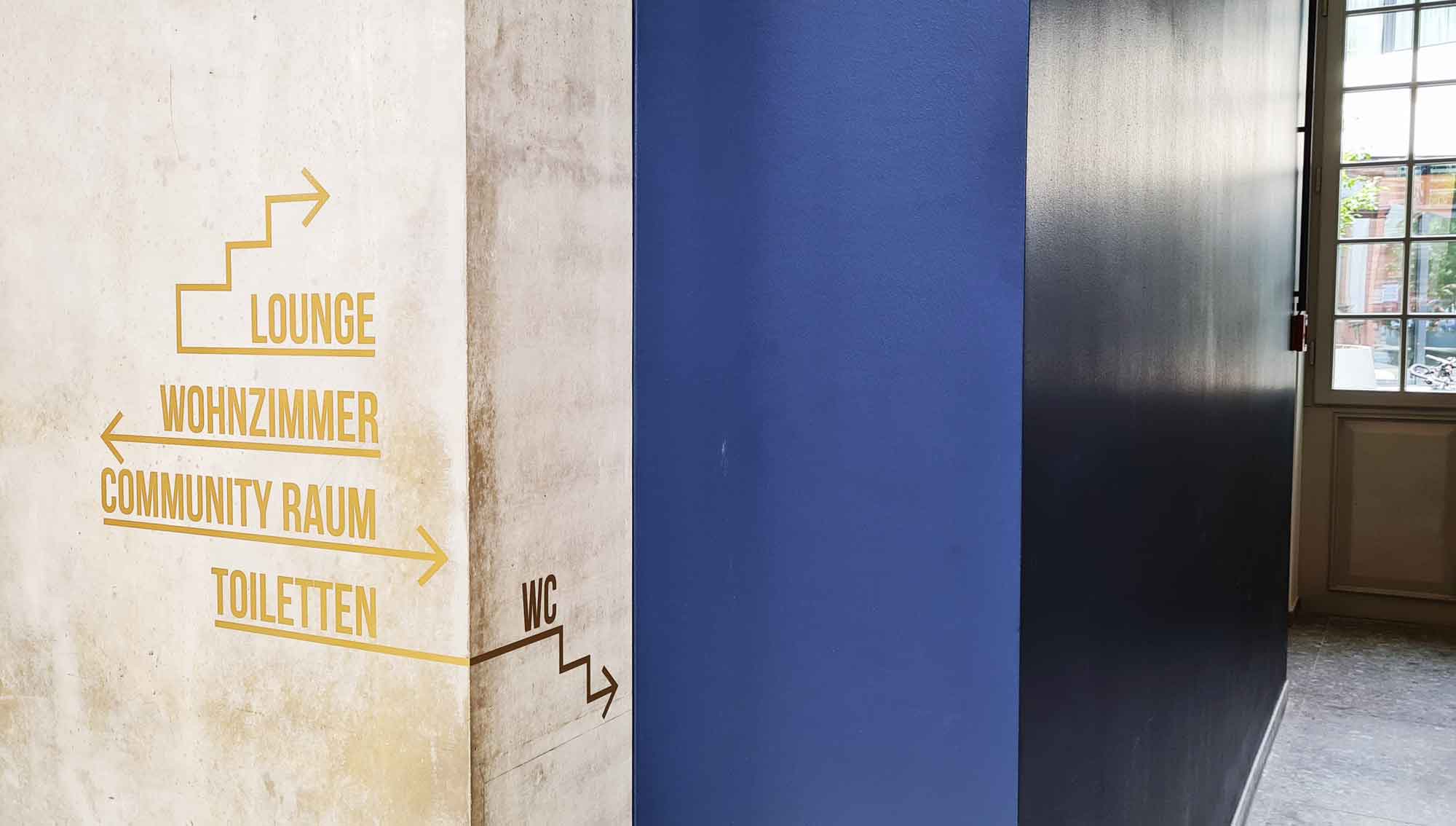 Wandgestaltungen mit aufgesetzten Elementen und Schriftzügen